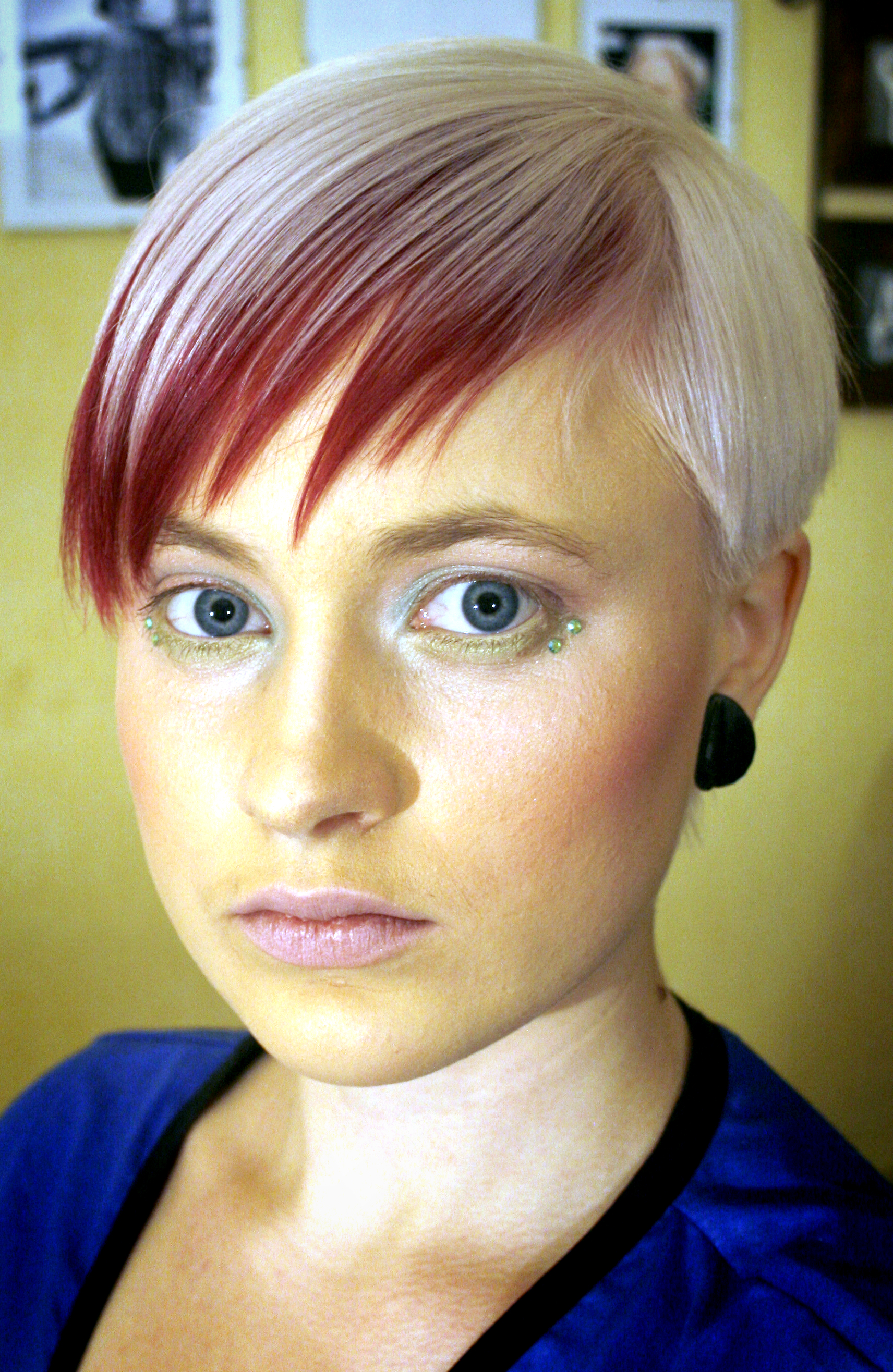 Jag har varit hårmodell. Mitt hår visade sig vara ovanligt svårfärgat, de tvingades bleka mitt hår tre gånger och sen gick den första färgningen fel, så att de fick upprepa även den. Under sista färgningen gjorde det så ont i hårbotten att jag trodde att jag skulle spy. På riktigt. Jag har spytt av smärta en gång förut, jag känner igen känslan. Jag var på gränsen. Självklart blev det problem. Min hårbotten blev full med blåsor, det rann klibbigt sekret från den och jag kunde inte tvätta håret på flera dagar för att det sved så mycket att ens få vatten på den. Just nu är jag så irriterad att jag inte riktigt kan uppskatta den snygga frisyren jag fick, men, ja, andra kanske kan.