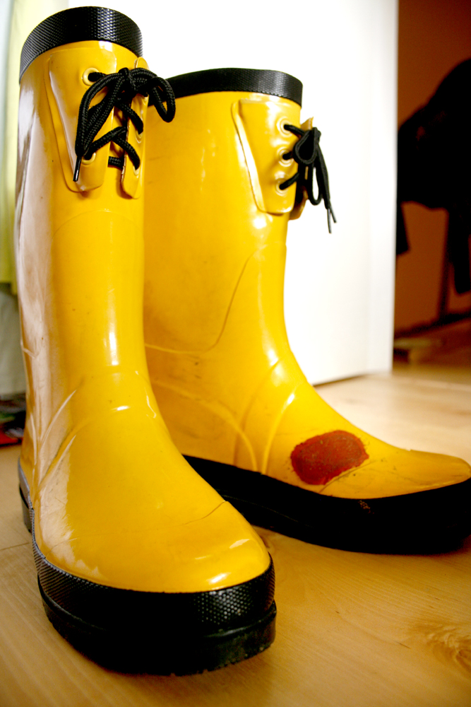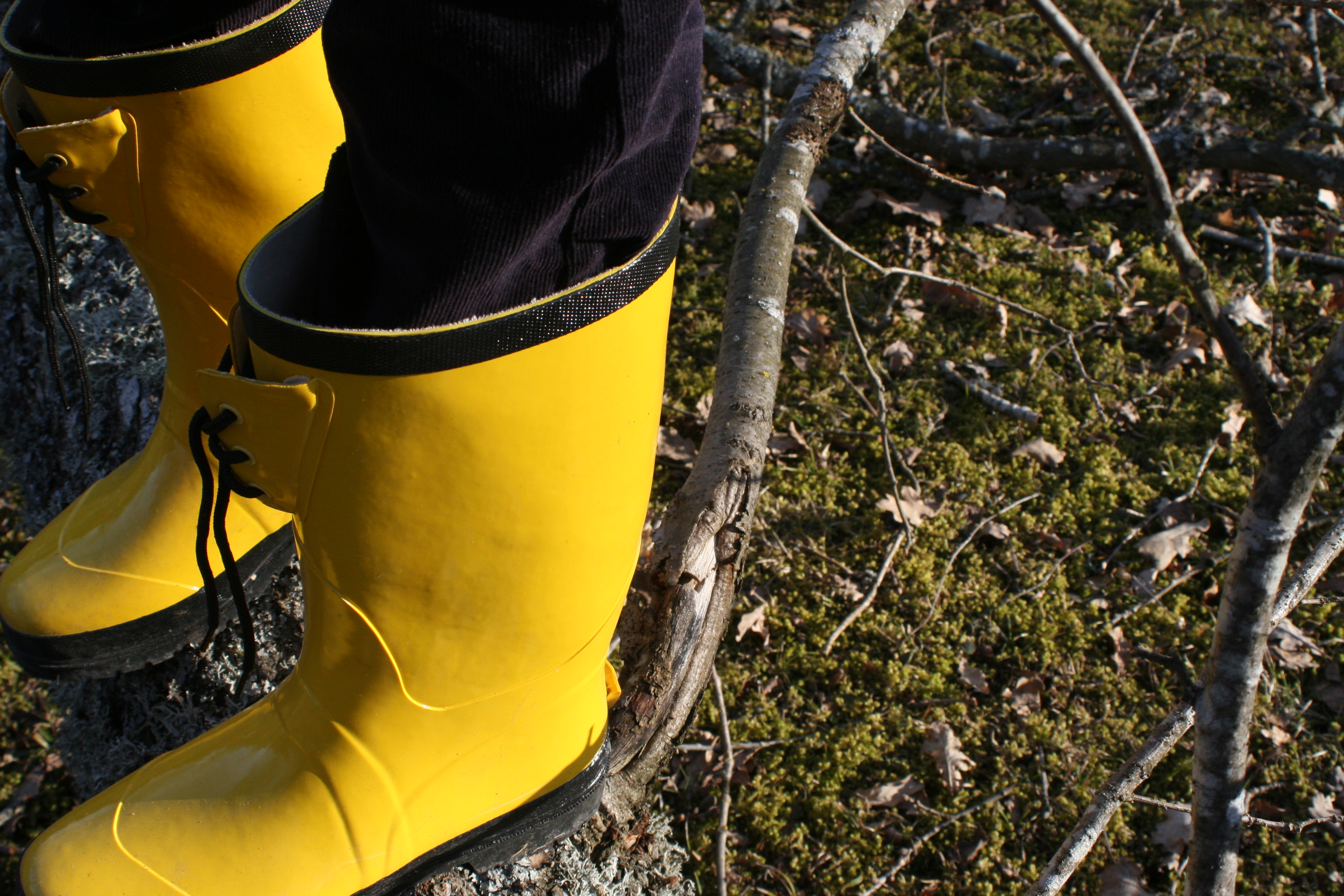 Nu har jag slängt mina gula gummistövlar i återvinningsstationens container för ej brännbart avfall. De har varit med på många underbara äventyr, och alltid lyckats få mig på gott humör när jag burit dem. De har figurerat i fotoberättelser och noveller. Men som de billiga stövlar de är, har gummit torkat till sprickor och läckte mina fötter blöta under exkursionerna i Närkes våtmarker. Jag försökte fixa dem med lagningsprylar för cykeldäck, men det fungerade inte. Gummistövlar som läcker är ganska värdelösa, så hur mycket det än tar emot, kan jag inte låta dem stå och samla damm i mitt rum. Jag var tvungen att låta dem gå vidare. Älskade gula gummistövlar.