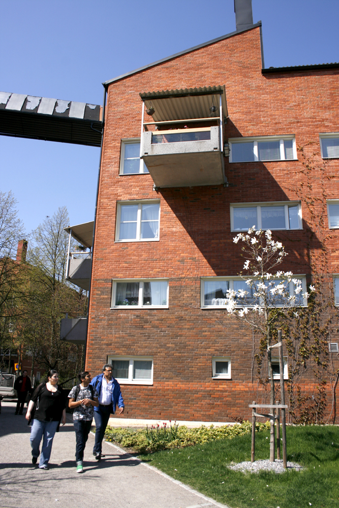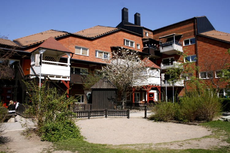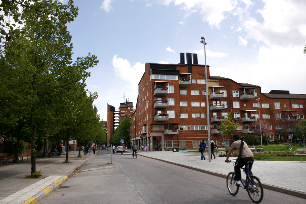 Den nyrenoverade Brandparken, mitt emot tunnelbanan.