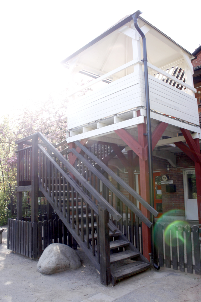 Trätrappen upp till vår loftgång och vårt lusthus.