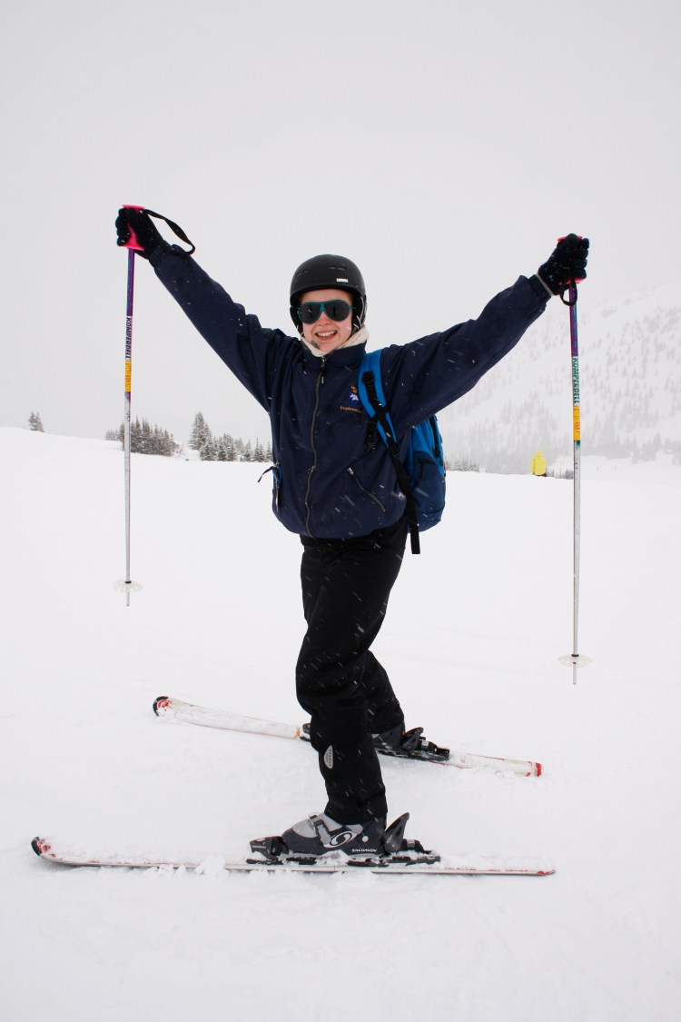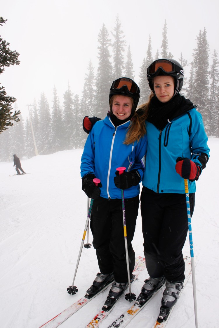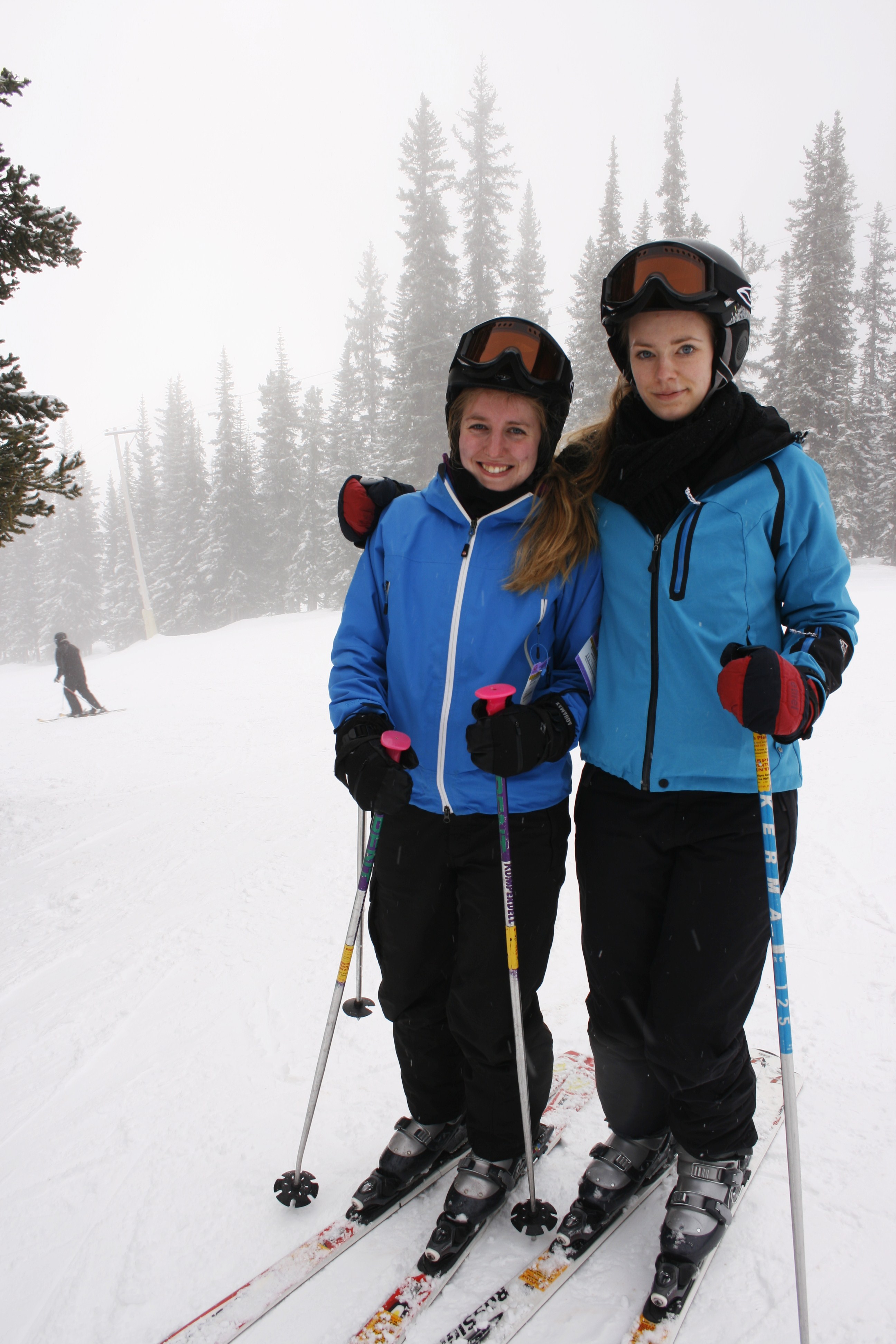 The Scandinavian girls – Marit and Frida in pretty blue, ready to conquer the slopes at Marmot Basin.