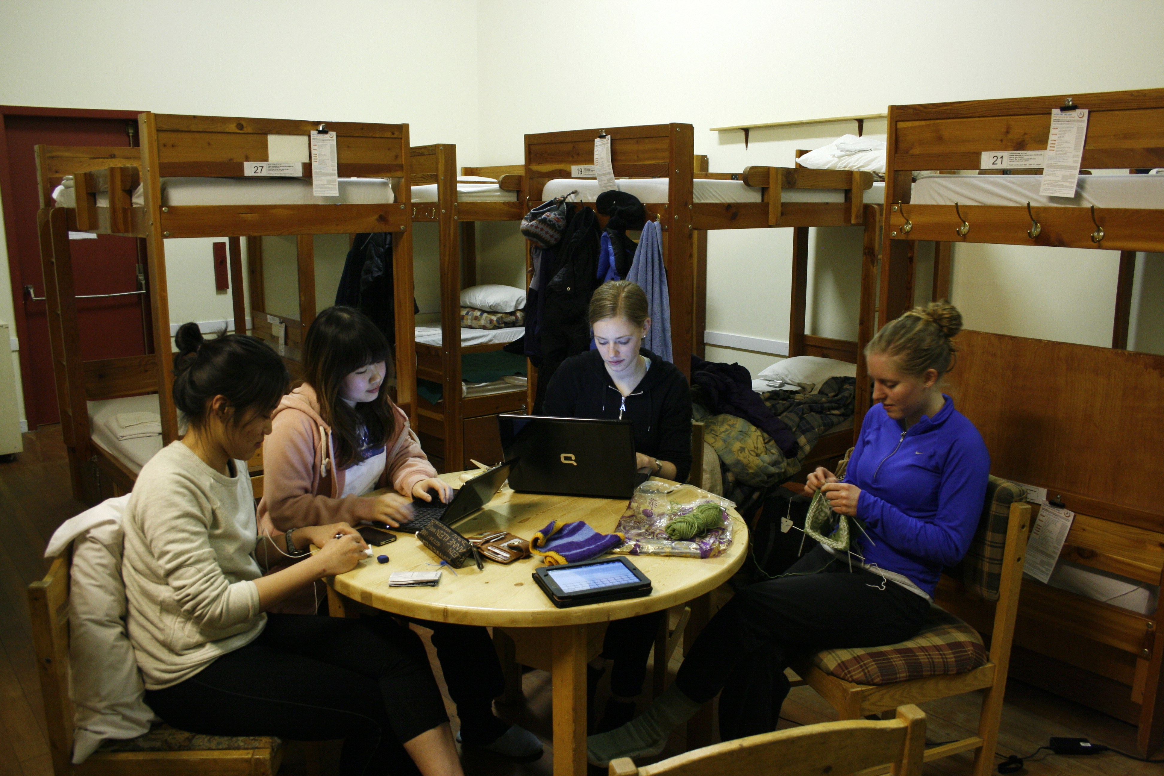 After a day in the slopes, one would think that a relaxed evening by the hostel commonroom fire would be the perfect way to prepare for sleep – but no. With free wi-fi, Facebook calls like a jealous lover and the others spent their evening in the girls dorm, drawing, knitting and surfing the internet. Me, on the other hand, felt like I’d been up til five in the morning (which it was, in European mean time), so I went to bed early and slept like a log until seven the next morning.