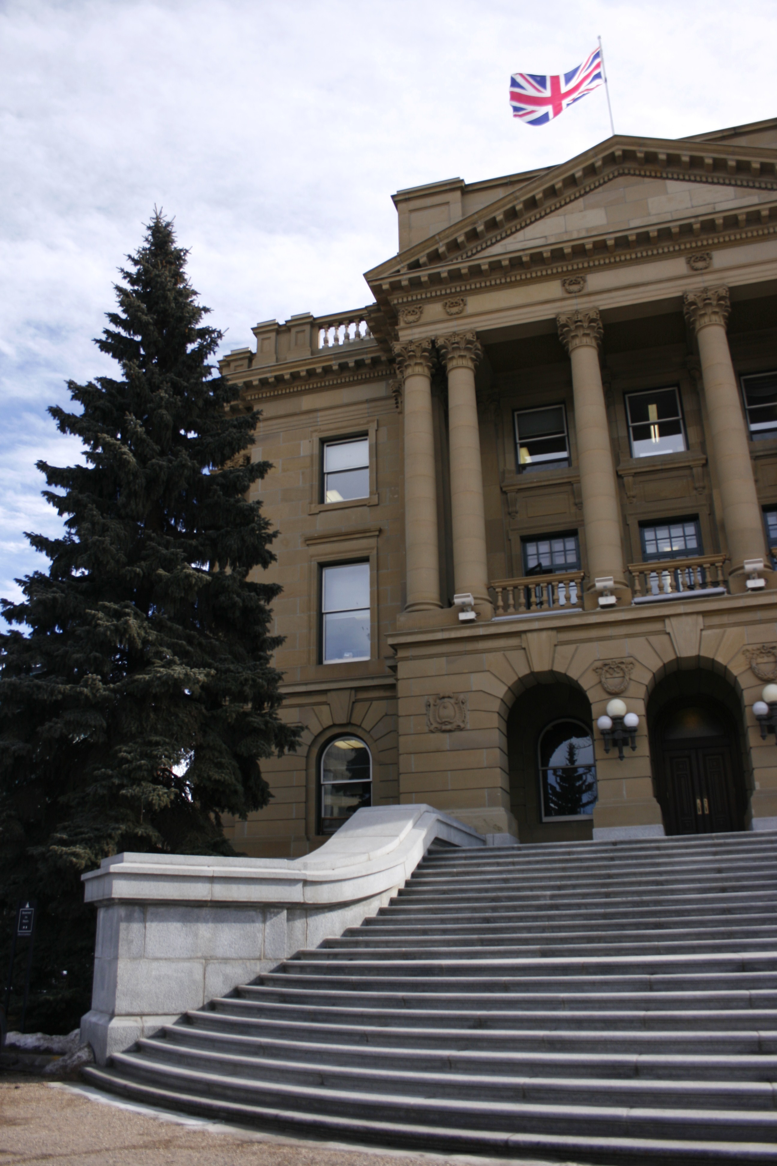 The impressive Legislature building, with both the Canadian and the UK flag waving from the roof.