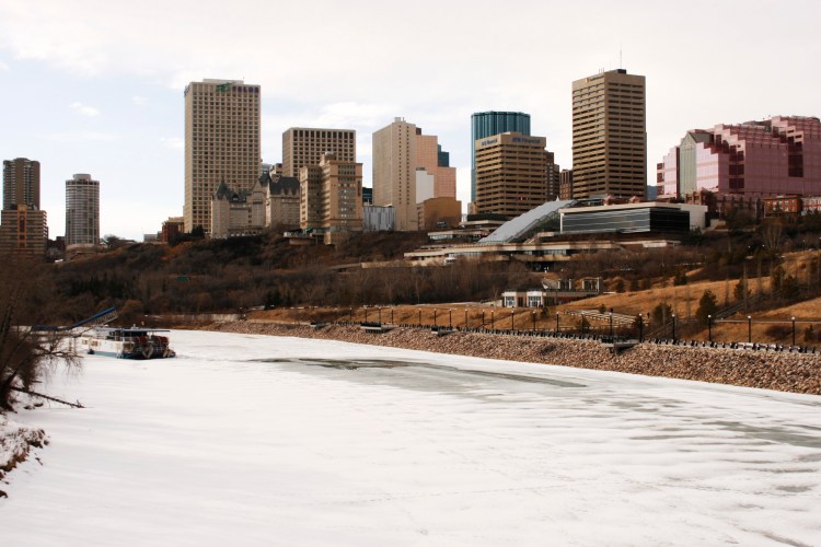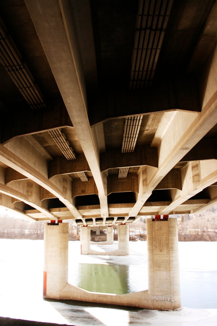 One of all the bridges crossing the North Saskatchewan River, the beautifully meandering river that separates downton Edmonton in the north from the University and Old Strathcona in the south.