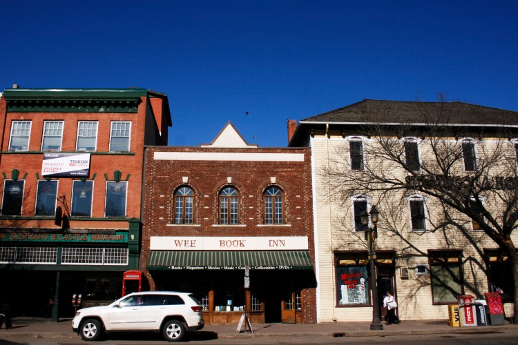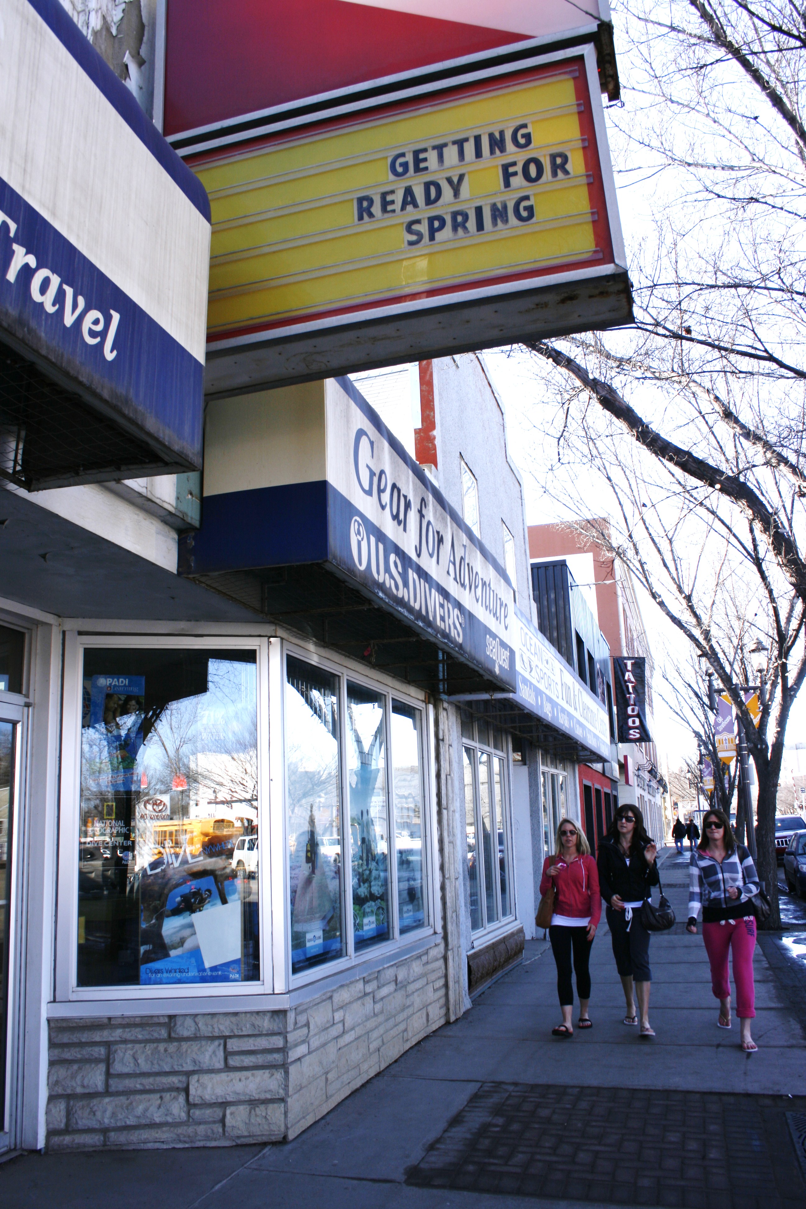 Only a few blocks from the University, a street called Whyte Avenue runs. This is thevmain street in an area called Old Strathcona, which used to be a separate town from Edmonton. Now it’s the hip part of town, with the oldest brick houses and the coolest shops and best restaurants. Kind of. And it is a really nice walk, along Whyte Avenue. The buildings are low and some are painted in bright colours. If I lived in Edmonton, this is the area where I would choose to go for a leisurely afternoon stroll.