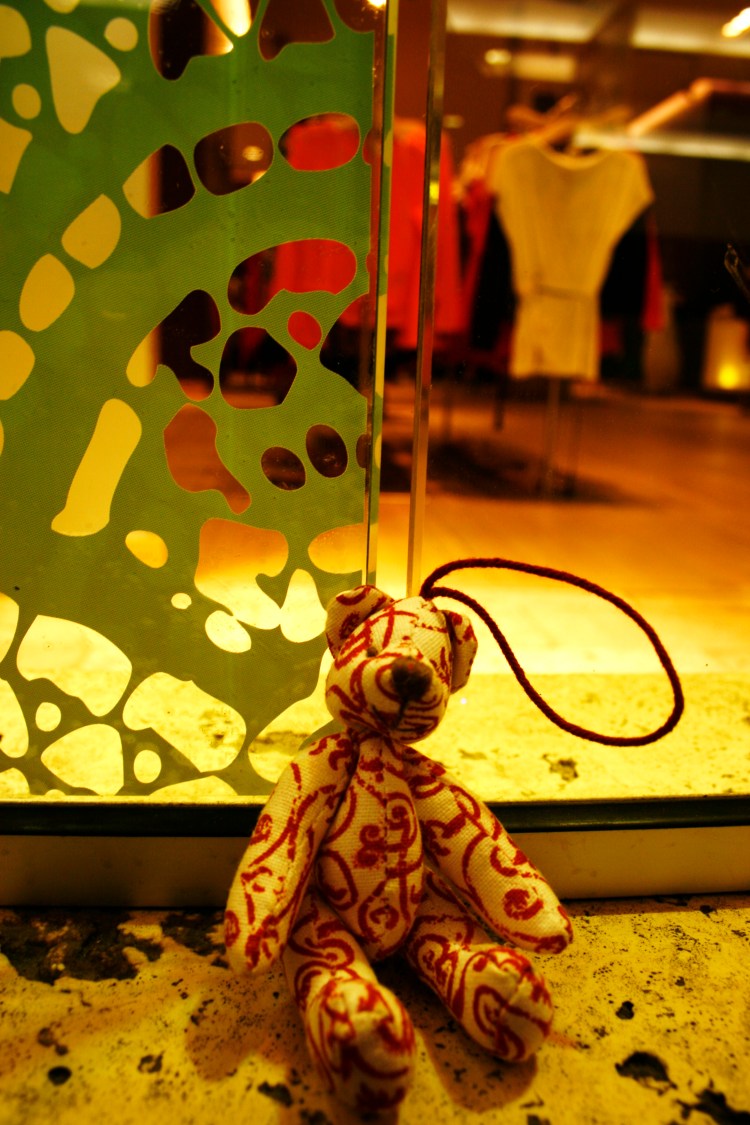 A day of shopping is really trying, especially if you are a tiny teddy bear and the shopping mall is the biggest in North America. And Mr. P didn’t find anything interesting there either. It was just too big. He much more prefers the small, exclusive boutiques of Whyte Avenue.