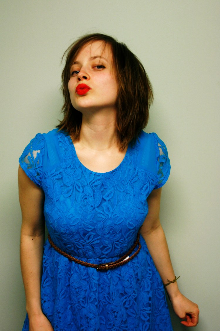 I bought a blue lace dress and a golden plaited belt in the West Edmonton Mall. A really cute blue lace dress. So even though we were invited to a St. Patrick’s Day party in Dress-Down-Canada that same evening, I skipped the green and dressed up my new dress, the golden belt and the bright red lipstick. Canada will simply have to get used to my colourful Swedish taste in fashion.