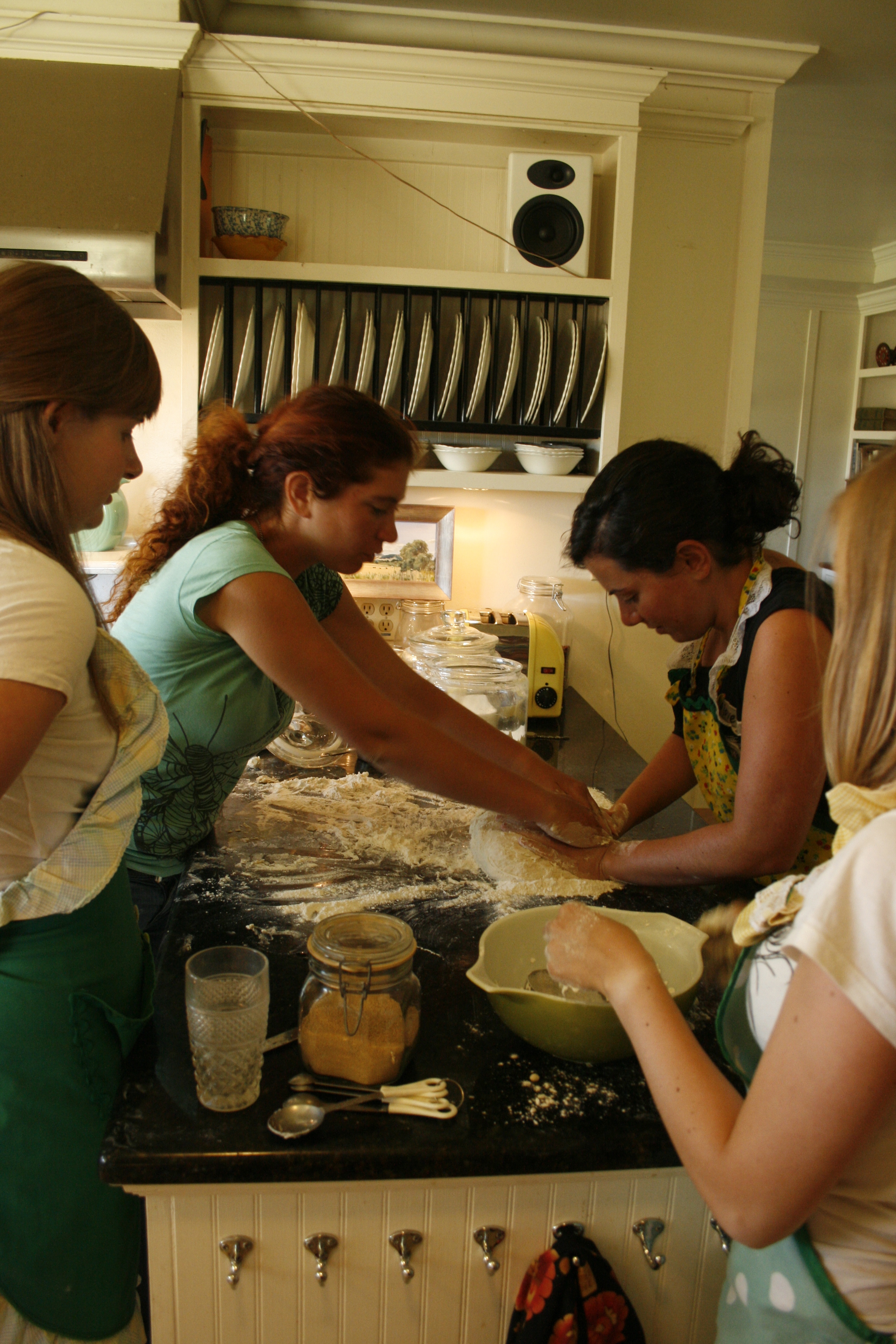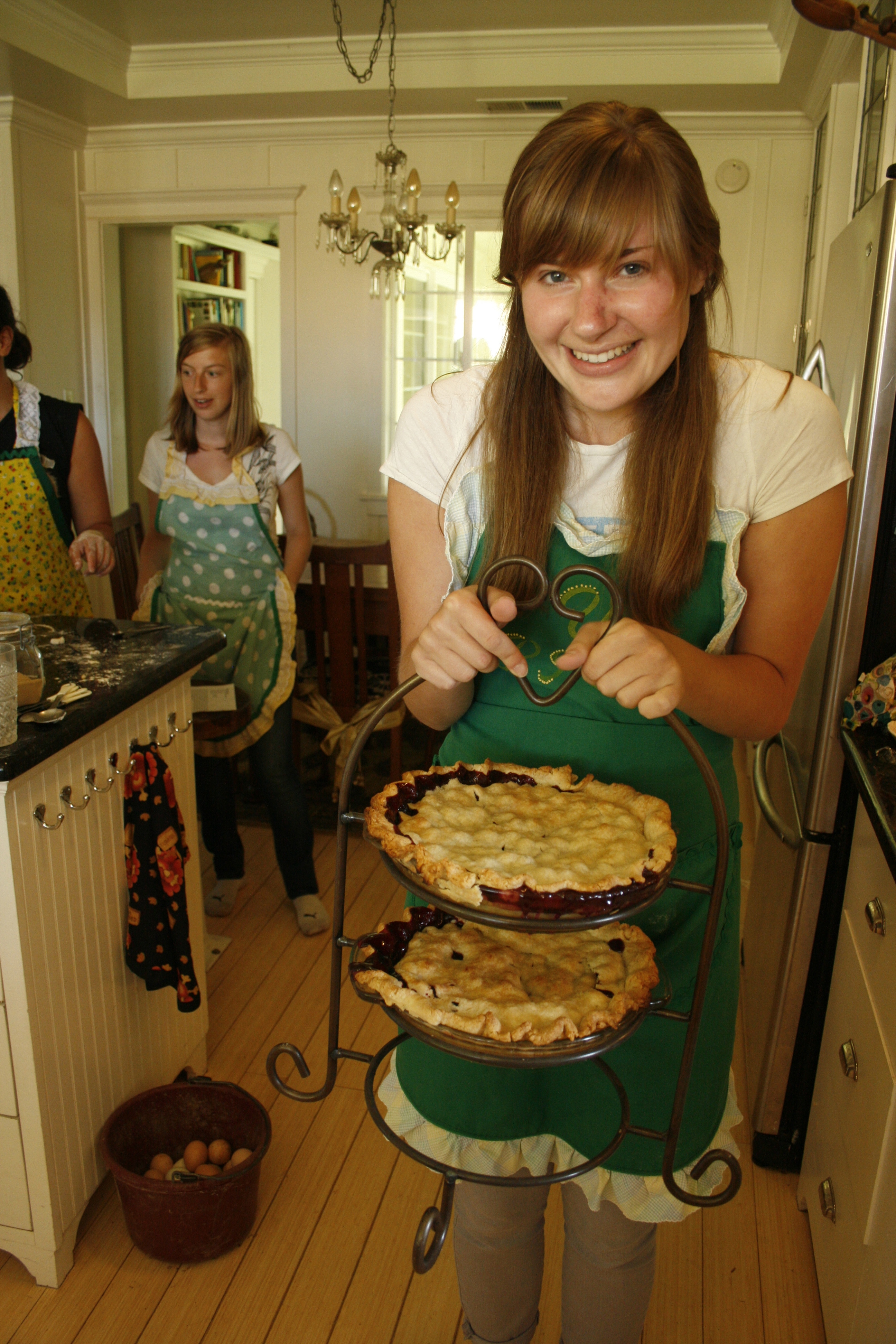 June and July: Some afternoons, when the stable chores and the weeding and picking was done, we would gather in the kitchen and be taught how to cook or bake. Lorri was passionate about food, and Snazzy, one of her daughters, had a culinary collage degree. So they were both very knowledgable in the kitchen, to say the least. And being taught how to do these typical American dishes made for a really fun afternoon activity.