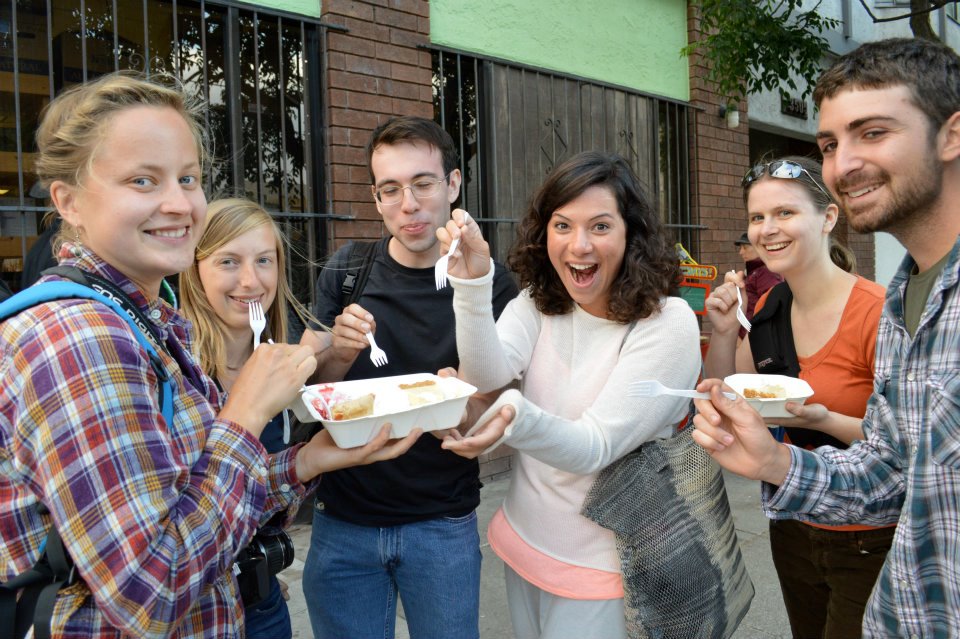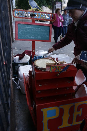 Of course we had to try. She had almost run out of everything, and we got the last two pieces that she had – lemon custard and strawberry-rhubarb. They were heavenly. Seriously, there can’t be a better way to eat pie than from a paper box with plastic forks, on a San Francisco pavement on a Saturday afternoon together with a bunch of new friends.
