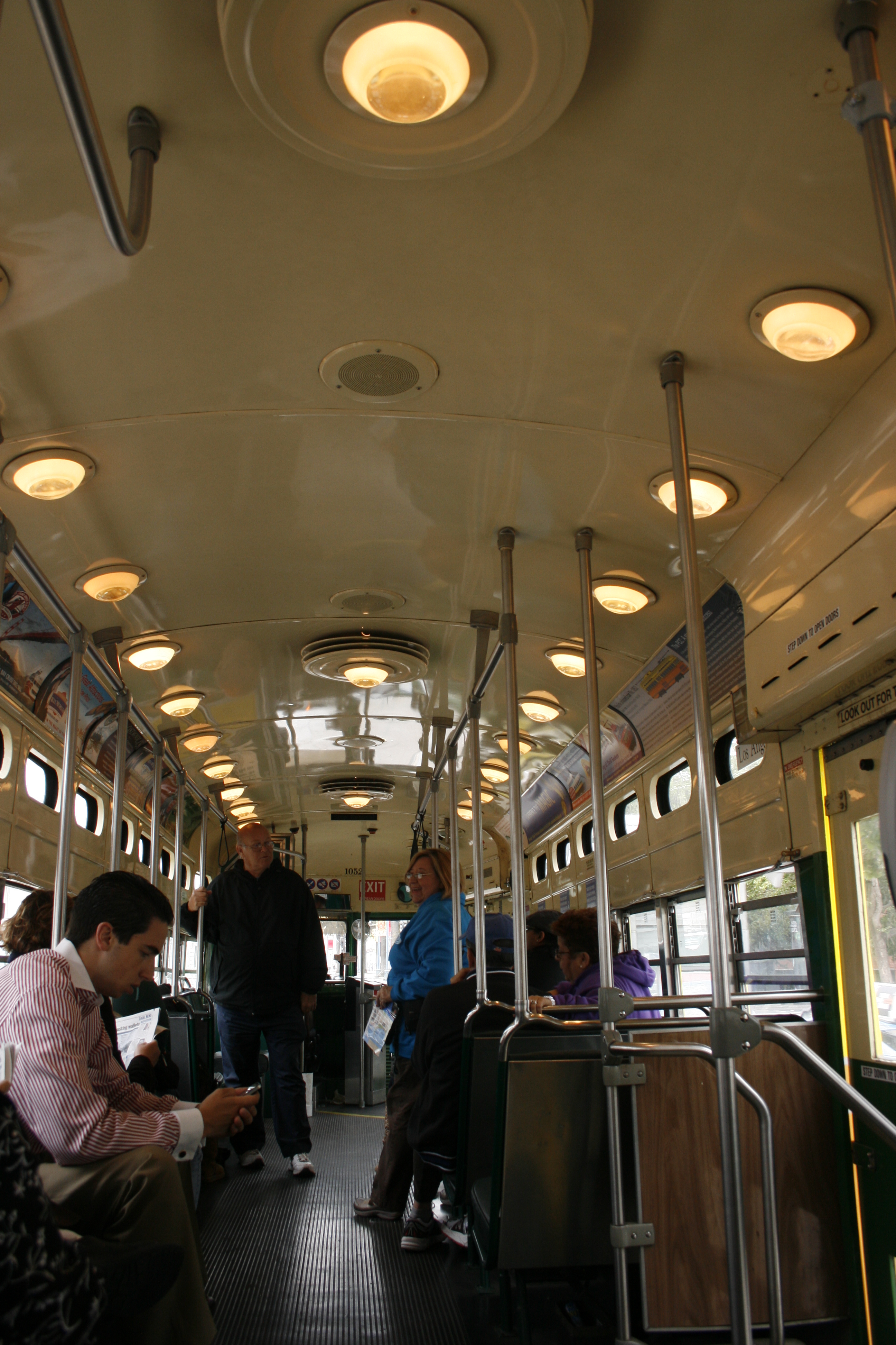 The trolleys were from all over the United States. Bright yellow from Los Angeles. Or this beautifully green from San Diego. Ride and relax. So cool.