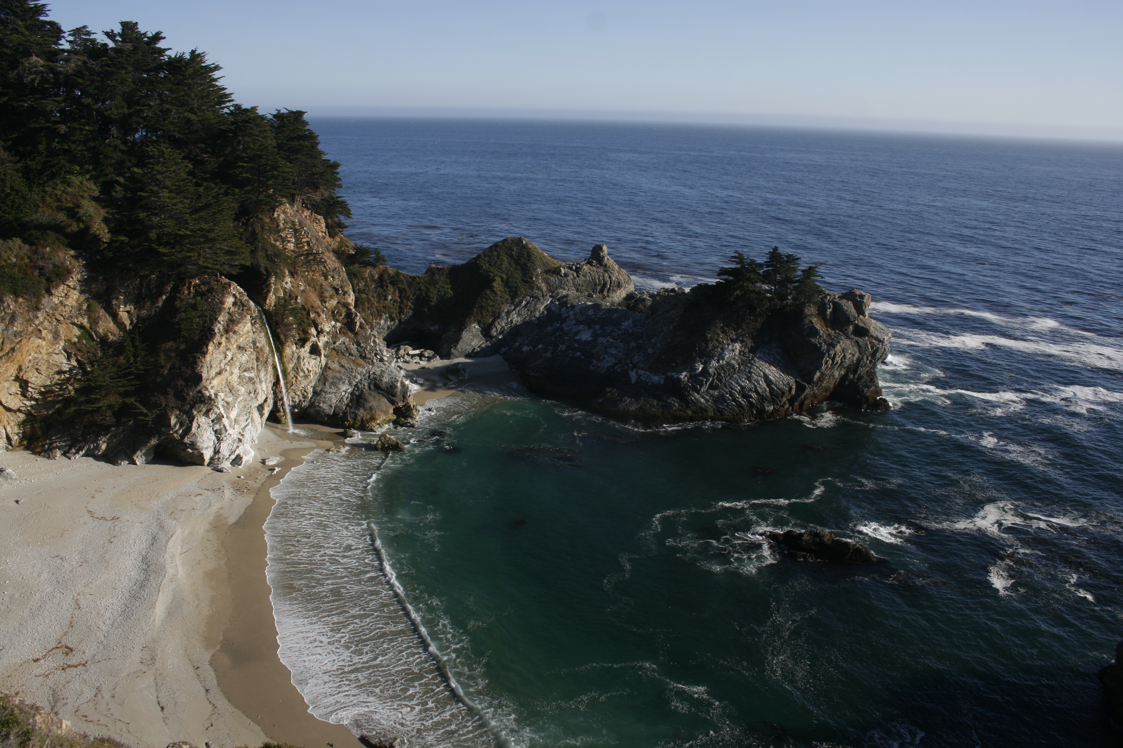 Julia Pfeiffer Park. The only waterfall in California that flows straight into the ocean. Imagine this as your living room window view. That was actually what it was, the terrace from where this picture was taken, built by an heiress and then donated to the public as a State park in her will. The house has been torn down now, but the terrace is still there, for every eager tourist to hike to.