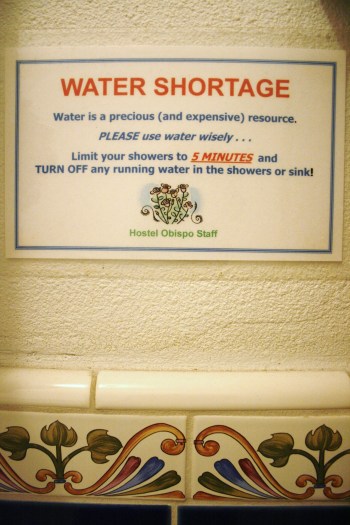 At several hostels that we stayed at in California, they had signs urging us to use as little water as possible.