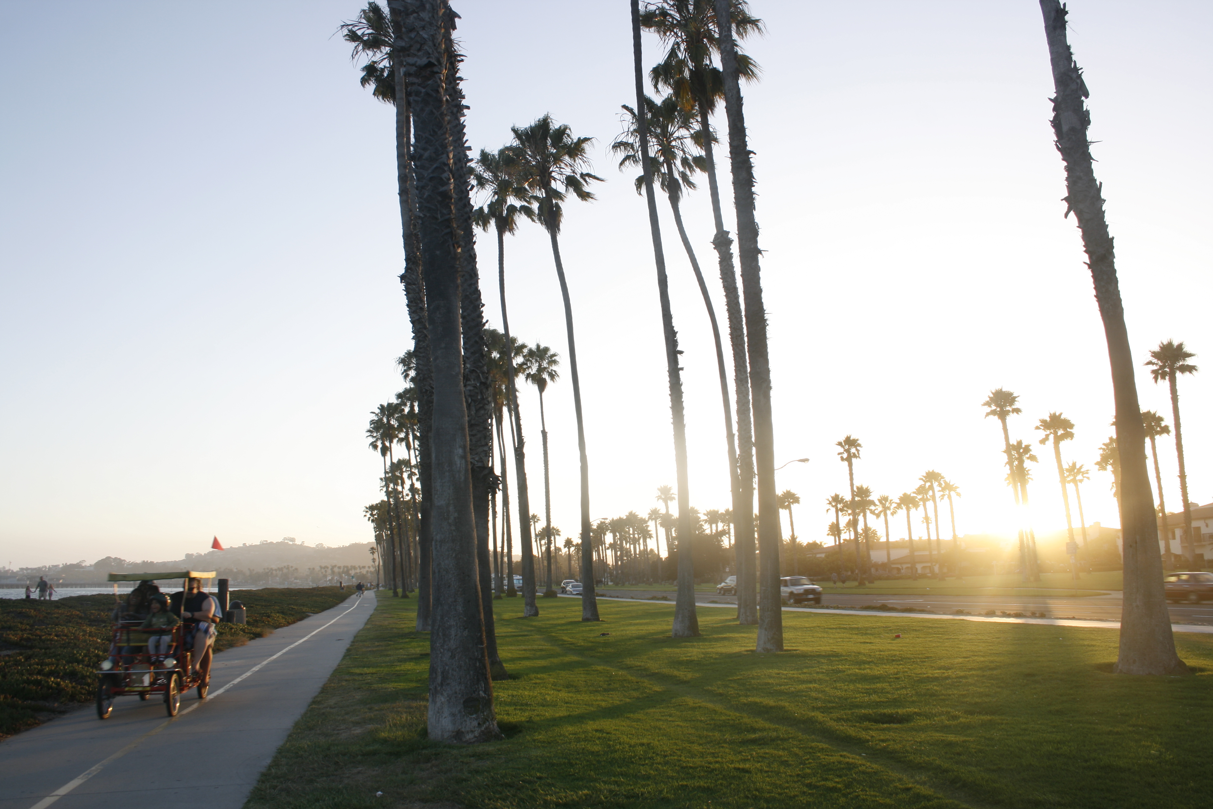 We made it down to the beach before the sun set. Apart from the beach facing south, and therefore not having the sun set in the ocean, my first impression of Santa Barbara was that of a typical southern Californian beach resort. Tourists, plam trees lining wide boulevards and sand.