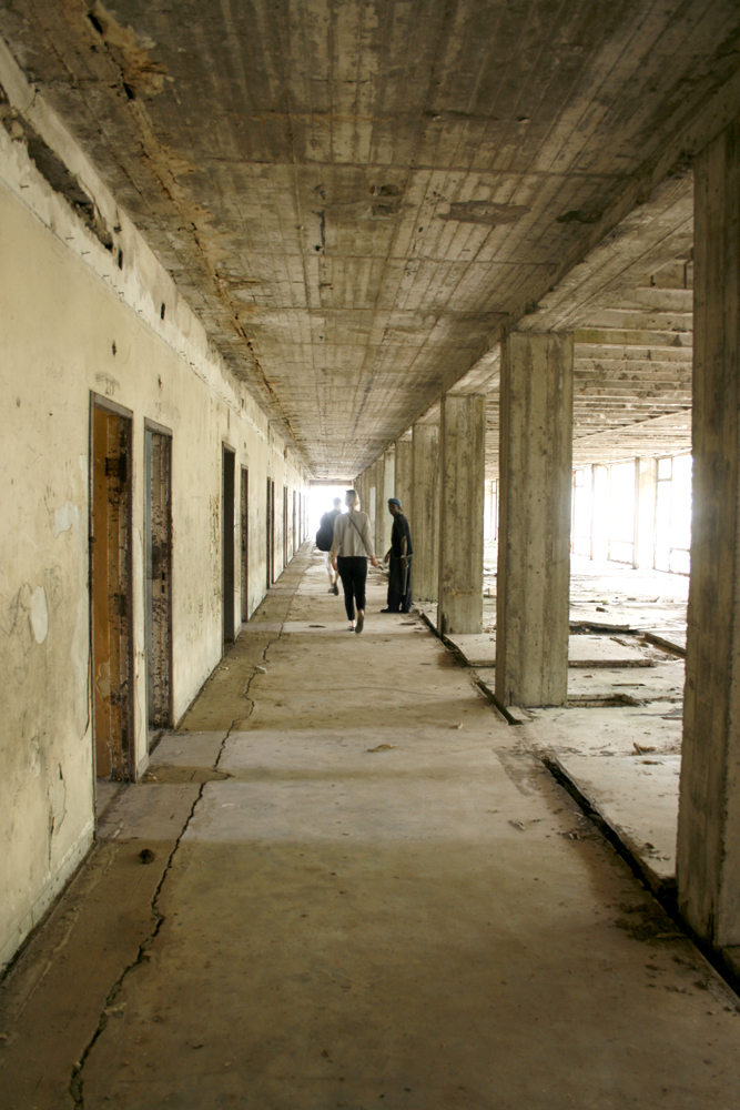 A couple of years ago Gaddafi signed a contract with the Liberian government, with the plan to rebuild what had been destroyed – but then the Arab Spring came and now there’s only a couple of guards there, who, for a fee, can be persuaded to take you on a tour. A huge skeleton on the best piece of property in Monrovia.