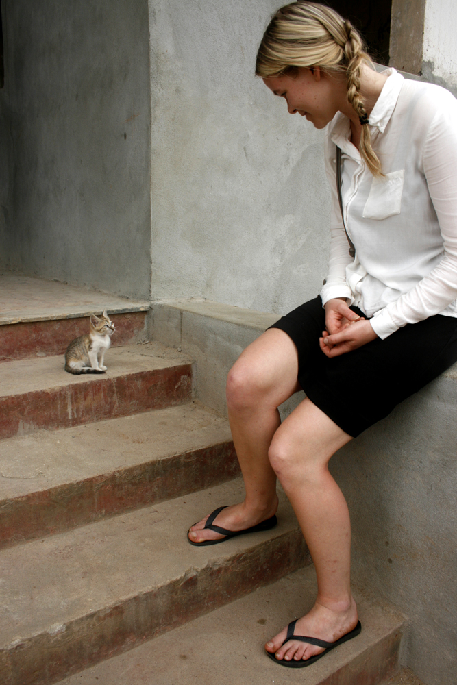 Hanna in Harper, trying out the way everyone carries around stuff in Liberia. It’s tricky, and god, how Morris and a couple of girls across the street were laughing while looking at Hanna’s efforts.