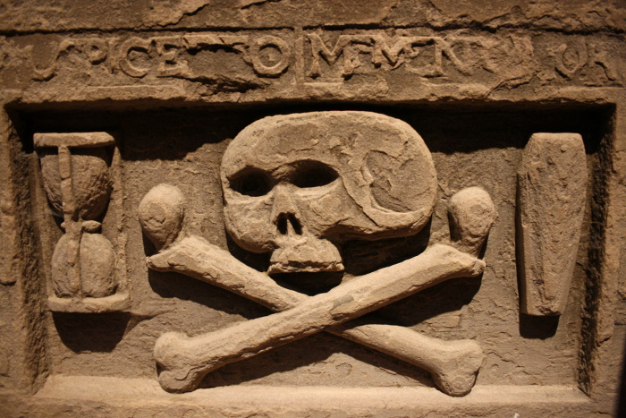 The walls of the cathedral was full of these skulls and bones, combined with the hourglass and something kind of reminicent of a coffin. Above, something unintelligble is written in latin, and then MEMENTO MORI. Remember that you will die. Isn’t that a wonderfully morbid thing to cover the walls of a church with?