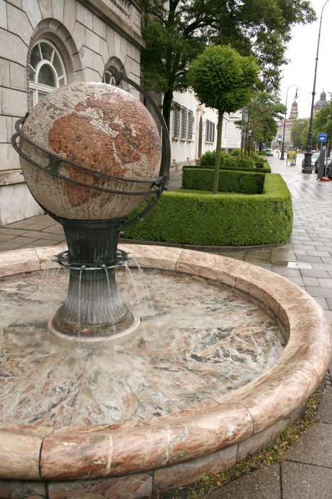 Walking to and from the museums through the rainy streets of downtown Munich, I saw some really odd pieces of architecture. They were really into the classical stuff, the former kings of Bavaria. As for me, I like wall paintings and models of the Earth of all kinds.