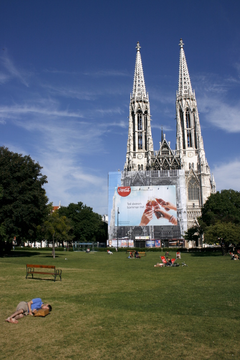 The Votiv-kirche and Sigmund-Freud-Park in the morning sunshine. Funny/weird with the Coca Cola advertisement. I guess they’re doing some kind of restoration behind it, but still. I wonder what god would say…