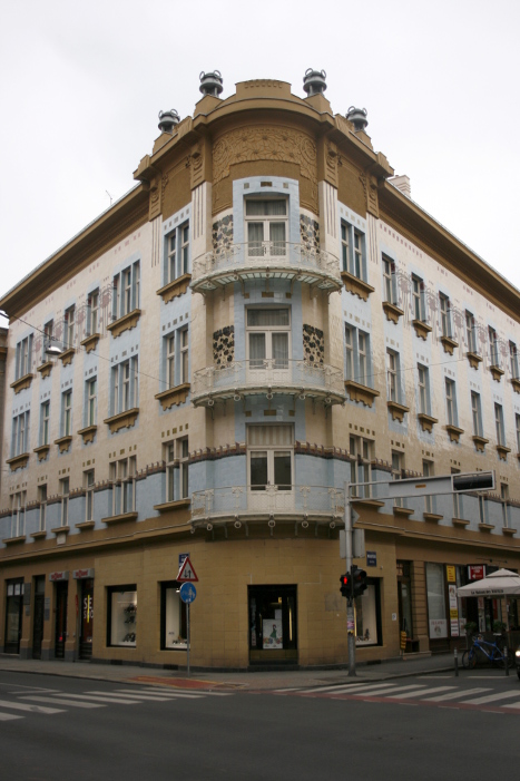 The Kallina House, built in 1904. One of the main investors to the building owned a ceramics factory, so that’s where the ceramic tiled facade comes from. Lovely building.