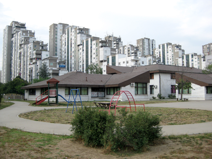 Be as it may with the socio-economic situation in Novi Beograd, the extreme urban landscape with enormous concrete buildings on rows upon rows, seemingly neverending, held a strange fascination on both me and Hanna. For Kirke too, in a purely aesthetic sense – but Hanna has a degree in urban planning and I’m a geographer. This was an example of what we’ve spent years of our lives studying at university: how people live. Here, it’s the concrete jungle