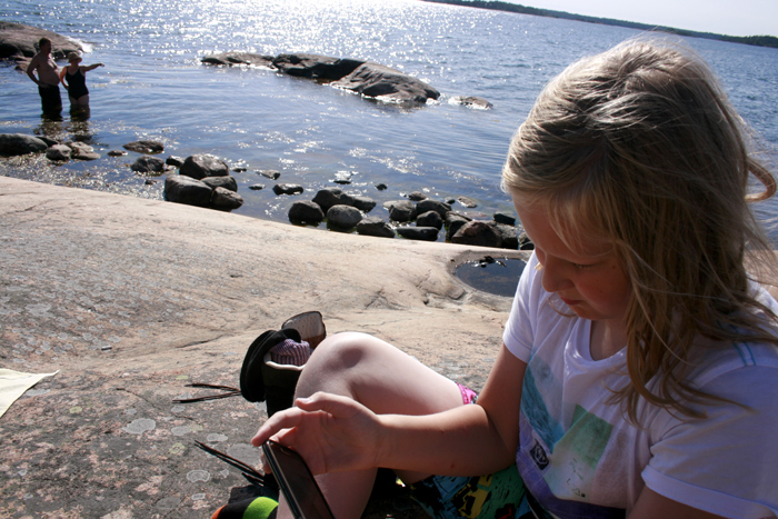 Dad and Anna in the water, while Aron plays on his phone. The perfect summer idyll.