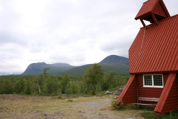 The chapel up on the hill by the Nikkaluokta tourist station, overlooking the valley that leads up to Kebnekaise. A beautiful place to build a chapel on – it very much reminded me of the tiny chapel that Vladimiro showed us up in the Arizona highlands on our way from Phoenix to Grand Canyon. They were both surrounded by birches, and blessed with an incredible view.