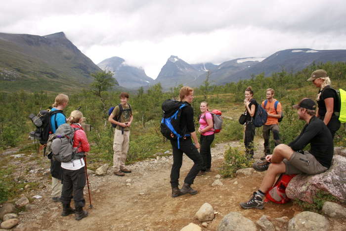 When the bus finally arrived at the Nikkaluokta tourist station on Thursday afternoon, I found a group of students from my department that were also on their way to Tarfala. We spent the afternoon sitting on the grass in the sunshine, playing quiz games and commenting on the attire and backpacks of the hikers arriving and leaving for the Kebnekaise trail, while waiting for our teacher to arrive.