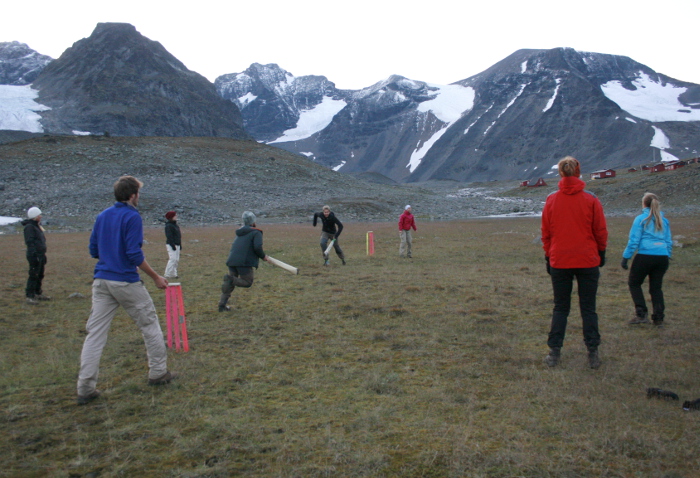After dinner one evening, we had cricket practice. Every year, there’s a cricket game between Tarfala Research Station and Kebnekaise Tourist Station, and we were all part of this year’s team, supposed to defend Tarfala’s honor.. It was a lot more fun than I thought it would be. Balls and having to hit them, be it with my foot or a bat or a racket has always scared me. But some of my classmates were really good. I guess it’s time to leave that childish fear behind and accept my poor sporting skills as they are, and just enjoy the game.