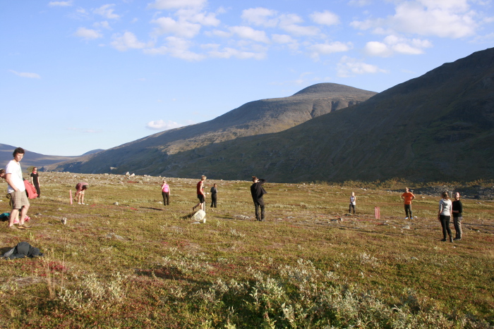 The cricket field at Kebnekaise Tourist Station. Not the ideal place to play cricket, to be sure, but it was beautiful.