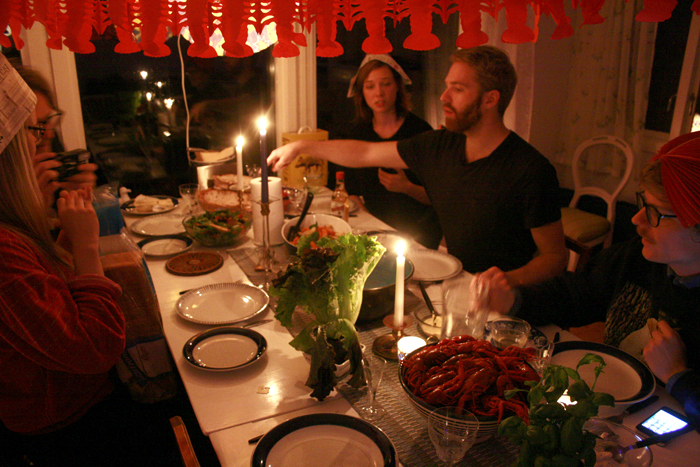 The idea was to have a traditional crayfish party. And I think we succeeded, with the crayfish and the bread and the schnapps and weird hats, even though people didn’t get very drunk and the conversation mostly revolved around things like gender roles and internet habits and how our taste in music might or might not change as we get older, with Swedish jazz playing in the background.
