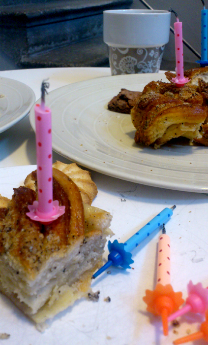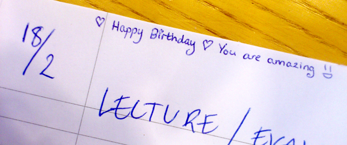My birthday started with mom calling and the sun shining. At school, my amazing classmates surprised me with an extensive morning break fika spread, and when I got back to the lecture hall, I found yet another sweet message on my lecture notes. (Suspect: Roweena).