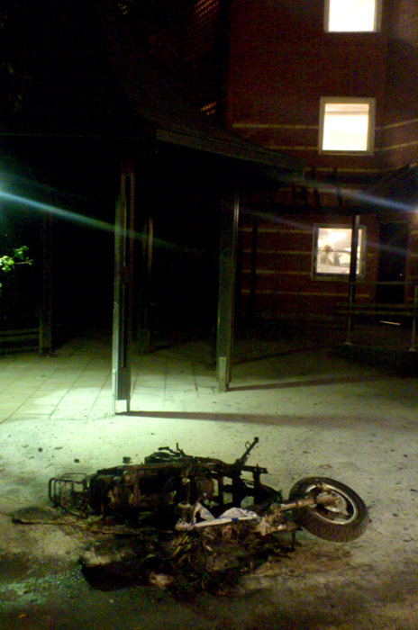 Maybe a small protest against the election results? For the youth of Skarpnäck, cars are too extreme, but burning a scooter sends a clear message (?).