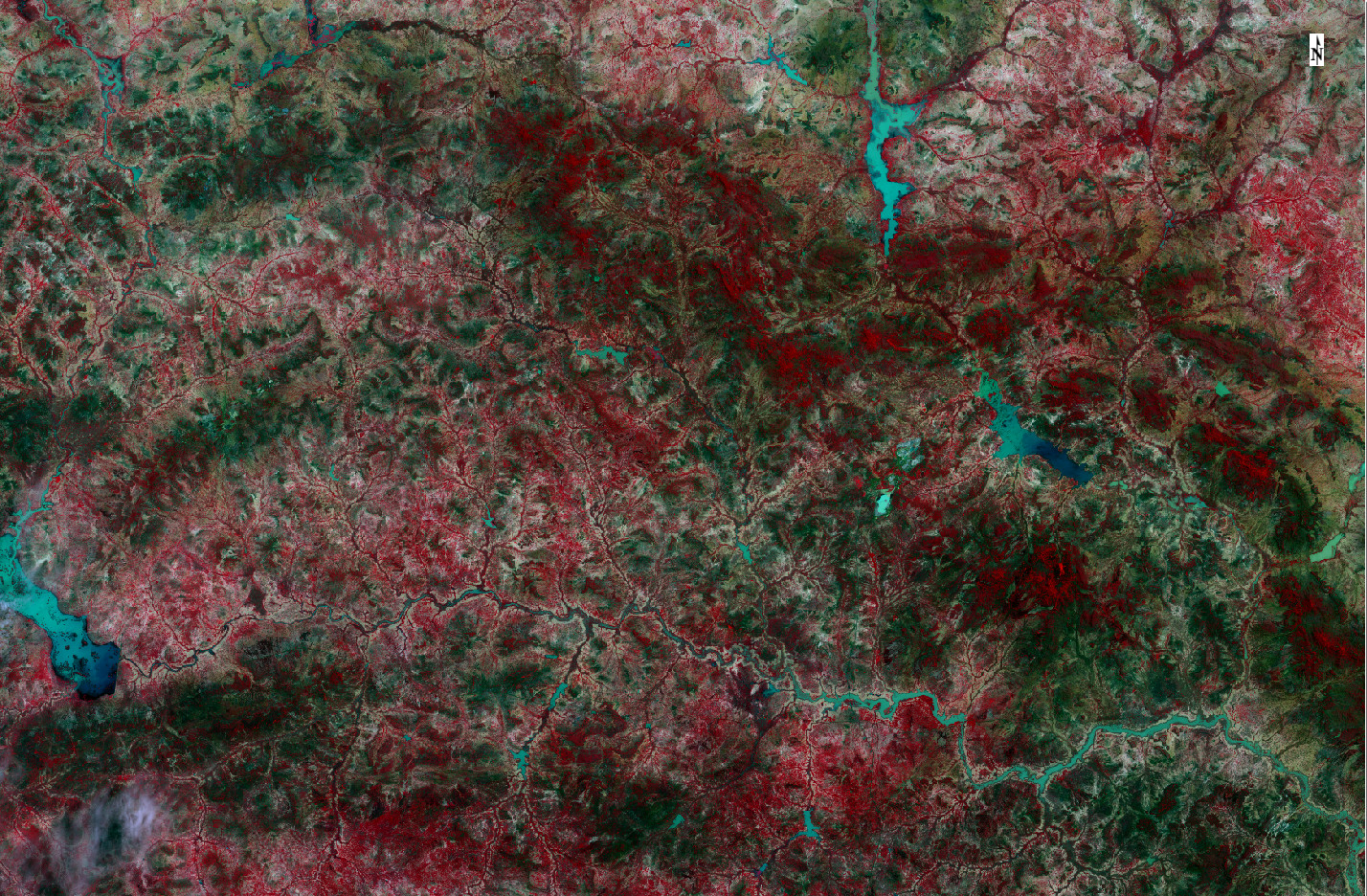 A Landsat 8 near infrared false color composite of one of my study sites. It’s pretty, isn’t it? The Earth’s surface is a piece of art.