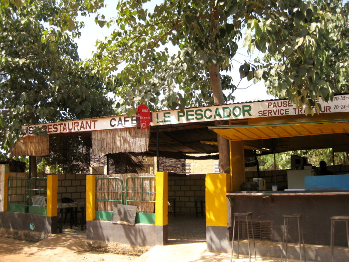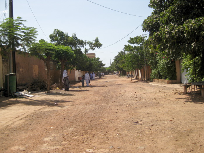 We’re staying in an area of Ouagadougou called Zogona, where chickens and goats run on the streets and children are playing with old tires. There are two big, paved main streets running through it, but all side streets are dry mud and potholes. It has this mix of quite fancy homes with high walls around them, as well as simpler houses and small metal boxes acting as bars or snack kiosks or cyber cafes. Small restaurants, shops and trees, and people sitting in the shadow at every street corner, taking it easy, enjoying the company of friends in the midday heat. It is a nice area, calm and lively at the same time.