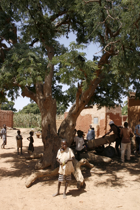The tree in the middle of the homestead. Children enjoying the excitement of visitors with fancy toys (read: GPSes and soil sampling equipment).