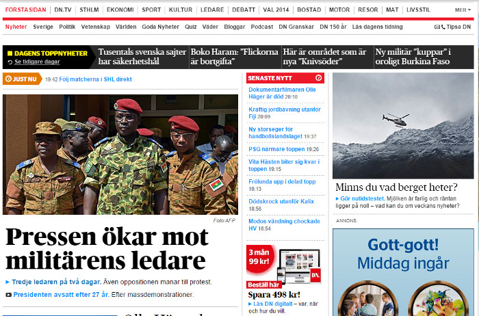 And finally, the developments here made headline news on the starting page of the biggest newspaper in Sweden: