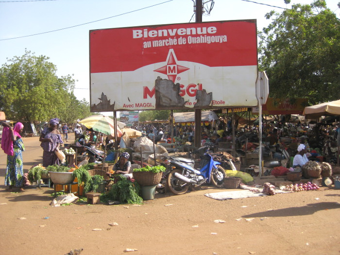 Helena was going back to Ouagadougou today, but before she took the bus we decided to take a walk through Ouahigouya, just to have seen something of it. And I was surprised of how fast it was to walk from our hotel to the market, a distance that I’ve only gone by car before. I guess it took so long by car, because of the crazy motorcycle and bike traffic here. You can never drive very fast in the towns. But walking is fine (if you can handle the heat, that is).