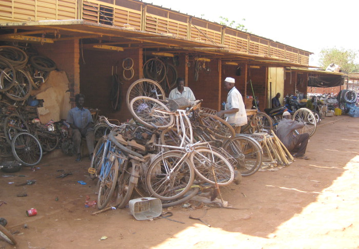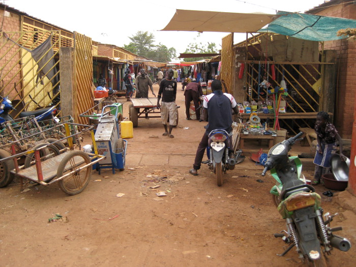 It is funny, with the market here. It covers several blocks, and is partly made up of wooden stalls where they sell vegetables and other food, but also of rows of permanent cement structures. What makes it funny, is that about half of the market is made up of establishments dedicated to selling parts of or entire motorcycles or bicycles, or to repairing them. Everyone drives a motorcycle here, even the fine, made up women in tight-fitting dresses and perfect hairdos.