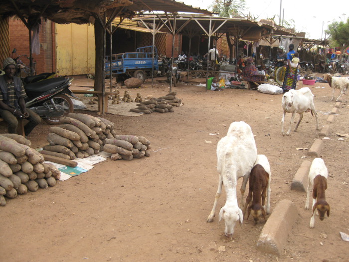 The rest of the market sells everything from shampoo to dried fish, vegetables, mountains of colorful flip-flops and imaginatively patterend fabrics, as well as tailors in tiny stalls sowing away at (what I imagine to be) amazing dresses for the fine women on the motorcycles.