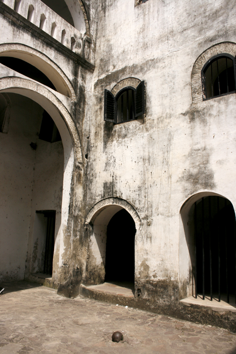 The small courtyard outside the females’ dungeon. The cannonball lying on the ground was used to punish the women who refused to sleep with the Portuguese or Dutch soldiers.