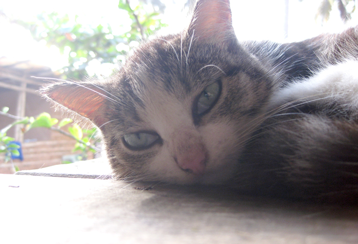 At Stumble Inn, there are no monkeys. But the cats climb on tables and walls not quite unlike the cappucines that I worked with. And both were and are always looking for food.