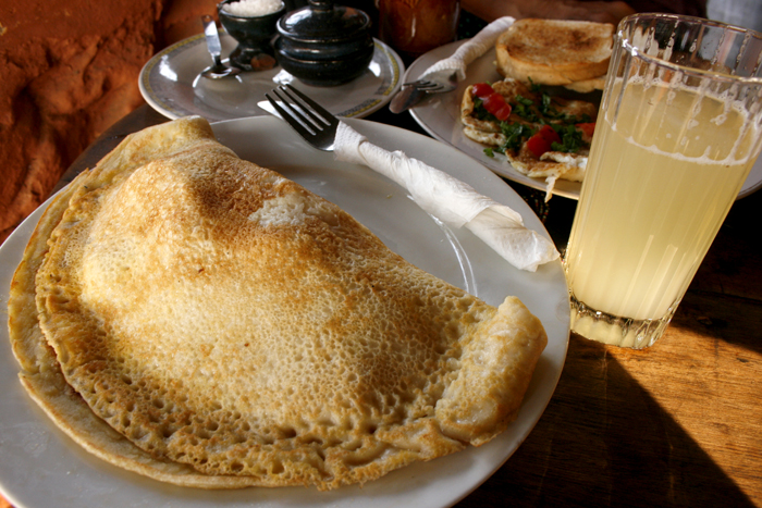 It brings me back to another set of breakfasts. I know you must be sick of my travel flashbacks by now. But that’s kind of how my brain works, connecting things. Time is not linear. Maybe I like these early morning breakfasts (mom and I are mostly at the bar by seven, when the kitchen opens) because of the good memories that they invoke, or maybe the memories turn good because the present is so nice. I don’t know. I just know I very much enjoy sitting there on my high chair at the bar at Stumble Inn, eating my fruit pancake and remembering all the pancakes I ate for breakfast at Parque Machía in Villa Tunari in Bolivia.