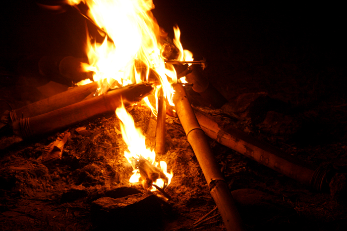 A moment: Sitting by the fire, watching the flames consume the bamboo trunks. A slight ocean breeze and the smell of humid darkness. Listening to Damien Rice’s new album, the painful honesty, his so familiar voice mingling with the waves crashing against the beach below. Sand between my toes.