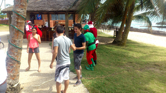 Some way further down the beach, the kids from the village celebrate Christmas Day by jumping in the waves and playing football and volleyball.