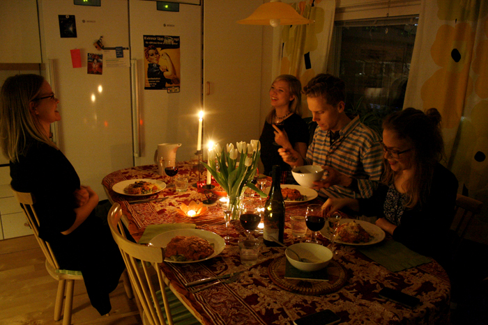 And the act of cooking for someone you care about. I think it was Lotta Lundgren who said it on the radio once, that preparing a meal for someone is the ultimate act of love. The time and effort I put into the preparations, and then: this is what will become the blood and bones of the person who eats it. Something mundane, everyone has to eat, it’s literaly what we need to survive. But also: something so incredibly intimate, me being part of someone else’s survival.