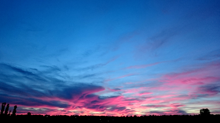 And then going home under a sky that turns from orange to purple, through the smells of brackish sea, yellow leaves and decaying apples under old trees.