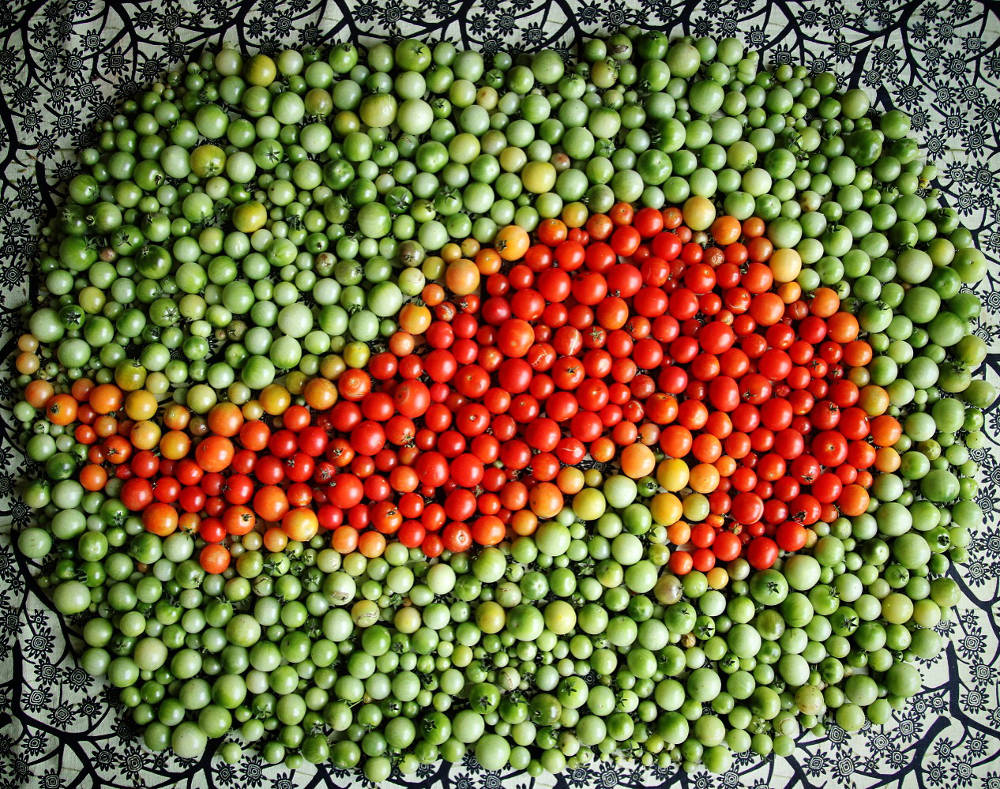 Photos: 1. Some of my balcony tomato harvest; 2. Me defeated by the dragon-scale jumper; 3. Natalia trying on the final version of the dragon-scale jumper for the first time. Posted on Instagram on October 20, 2020.