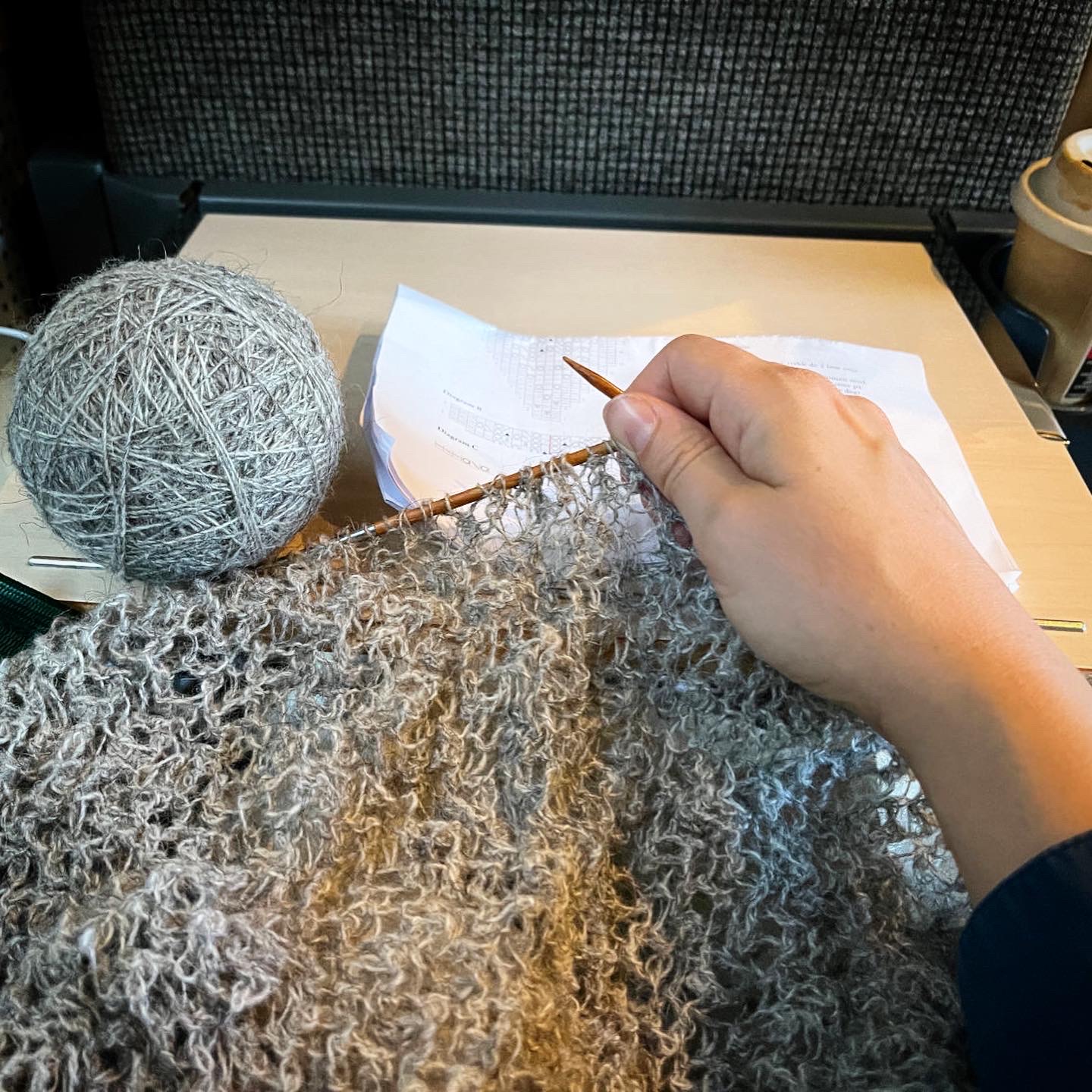 I’m working on a scarf, using yarn from a local Bergen factory, made from wool from vildsau sheep, an old western Norwegian breed.