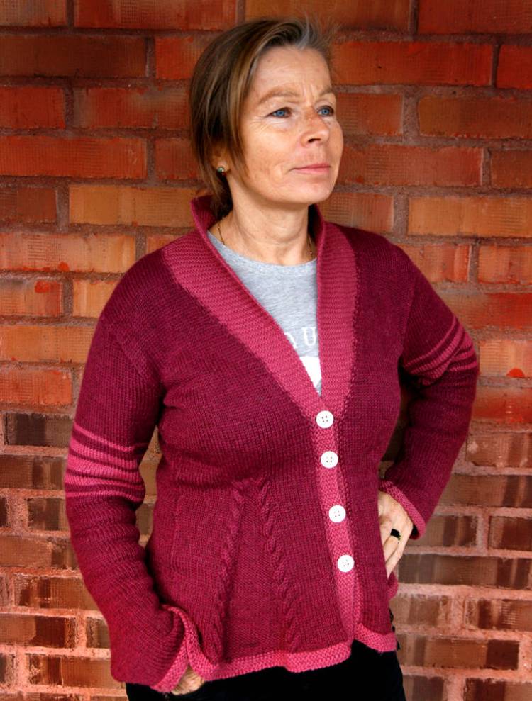 Actually, the first cardigan I ever made. I ended up giving it to my mother because she liked it so much. It is made with a slightly thicker alpaca yarn, and is an adjusted version of a Drops Design pattern, so, not strictly speaking completely my own design.