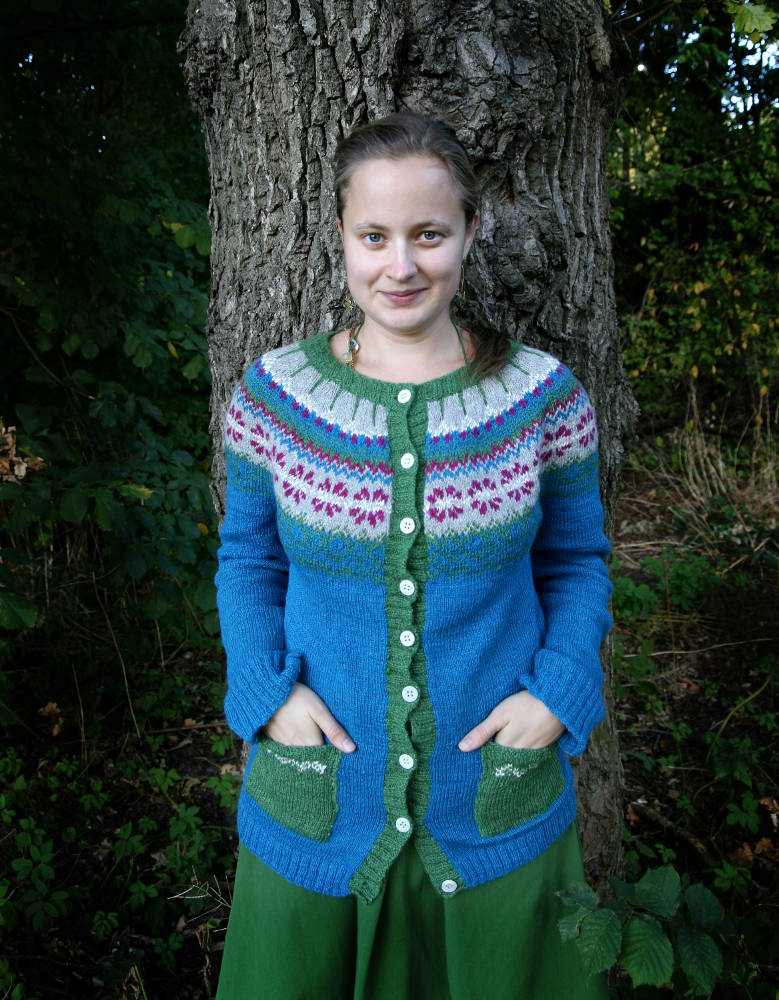 In 2009, in a cute store in Cochabamba in Bolivia, I bought a whole bunch of yarn. Many years later, I used the yarn to make this cardigan for myself. And then, even more years after that, I asked my friend and colleague Ashley to walk down to the lake during our lunch break to photograph me in it.
